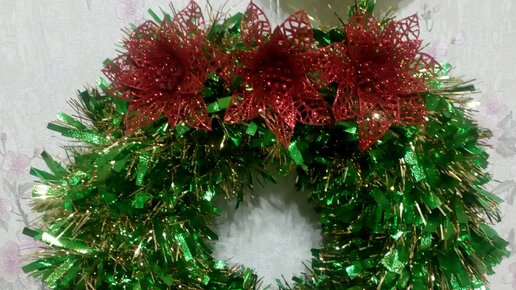 На этот раз я сделаю венок из легкодоступных материалов. Этот тип распространён среди рукодельниц поэтому попробую сама. Нам понадобится картон, бумага, мишура, аксессуары- украшения, клей, скотч. Вырезаем из картона круг, а у круга его серёдку-круг поменьше. Можно его сделать любым размером. На картон же скотчем крепим скомканую бумагу что бы придать объём венку. Закрепив конец мишуры на заднике венка мы начинаем обматывать заготовку. К слову чем пышнее мишура тем круче смотрится венок. Когда венок готов, можно его украшать...