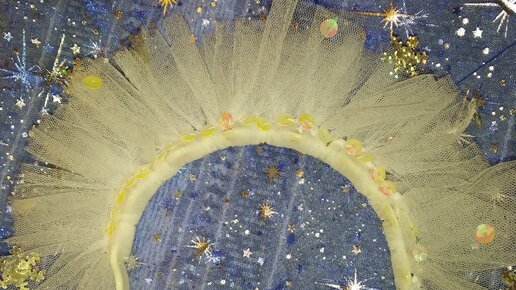 Снежинки очень популярный персонаж на утренниках в детском саду, моя дочка тоже была снежинкой пару раз. Чтобы новогодний наряд был завершенным, нужно продумать все аксессуары. Голову малышке можно просто украсить белыми бантами, но это так скучно. Я хотела сделать необычный головной убор, такой же воздушный и пушистый как снежинки. Вот что мне понадобилось. Ободок для головы пластиковый, белый или голубой, лучше если у него есть зубчики, рулон белого фатина, сейчас такой продается в магазинах где все для рукоделия...
