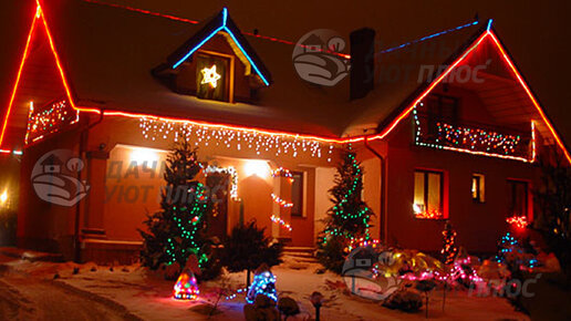 Новогоднее освещение, подсветка дома и участка