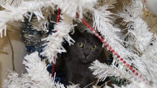 В прошлом году у нас на елке была большая красивая звезда. А в этом году она была уничтожена нашим котенком Фантиком. А дело вот в чем. Вечером, когда мы собрались нарядить елку в кругу семьи, наши коты Фантик и Бантик пришли помогать. Бантик он больше наблюдатель. Котоконтроль качества, так сказать. А вот Фантик стал носиться под ногами, беситься, хватать лапками дождик, путаться в гирлянде. Тогда мой сын Костик не выдержал и посадил Фантика на шкаф. А Фантик еще маленький, высоты боится. Сидит на верхотуре, наблюдает молча...