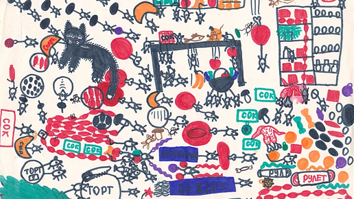 Я рисую, сколько себя помню. Наверное, во многом это заслуга мамы, которая однажды решила, что для своего возраста я рисую плохо и стала со мной заниматься 🙂 В подвале у нас лежит целая коробка, набитая моими детскими шедеврами. Там в основном прекрасные принцессы в пышных платьях и жемчугах и истории из жизни веселых зверушек. Уж не помню, где я нашла этот рисунок и по какой причине он лежит не в подвальной коробке. Но он меня позабавил. В нем я вся – детали, детали, детали… Все как сейчас. Если правильно помню, рисовался он в больнице, когда я попала туда с пиелонефритом...