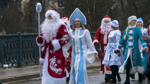 Быть Дедом Морозом и Снегурочкой это тоже работа, причём сложная. На этих персонажах сосредоточено всё внимание. Они главные герои новогодних праздников. А если дедушек и их внучек больше сотни, и каждая пара краше другой. И трудно выбрать лучших. Но и не надо. В таком ярком шествии они все хороши. Вот такой массовый парад Дедов Морозов и Снегурочек состоялся в городе Орёл 27 декабря. Герои праздника прошествовали через Ленинский мост (некоторым людям по душе старинное название Александровский)...