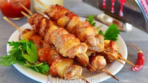 В последнее время стало традицией готовить на праздничный стол блюда, которые можно подать порционно. Это удобно, и выглядит красиво. А такие шашлычки ещё и очень вкусные. Их можно делать из любого мяса, овощей, грибов и даже с добавлением фруктов. В ближайшее время много праздников и вам наверняка пригодятся эти вкусные и эффектные закуски. Поэтому запасайтесь шпажками, сохраняйте наши рецепты в закладках и готовьте шашлычки на праздничный стол. Шашлык на шпажках в духовке на противне ИНГРЕДИЕНТЫ: Дополнительно: Калорийность: 133 кКал Время приготовления: 60 мин...