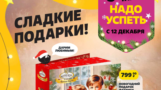 Друзья, давайте вместе заглянем в каталог новых товаров, которые залетят к нам в эти дни! НОВОГОДНИЙ ПОДАРОК KONTI 99 руб., НОВОГОДНИЙ ПОДАРОК СЛАВЯНКА 299 руб., НОВОГОДНИЙ ПОДАРОК ФАБРИКИ КРУПСКОЙ 799 руб. Ассорти бисквитов, печенья и батончиков. Материал хлопок, размер 180х200 см. Размер 42.5х40х49.6 см Акриловый, вращающийся, 32х23 см Беспроводной, складной, высота 28 см. Мощность 2000 Вт, 2 насадки для фарша, выработка 1,5 кг/мин. Для всех типов плит, включая индукцию ПОДАРОЧНЫЙ НАБОР AURA 199 руб...