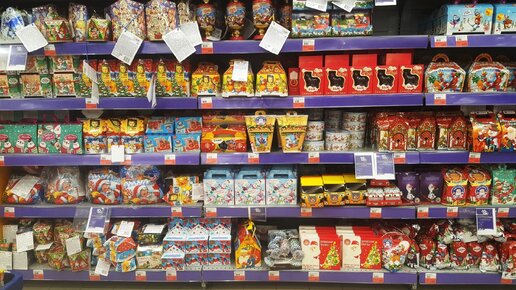 Здравствуйте уважаемые подписчики и гости моего канала! Что будете дарить своим деткам на Новый год? Приближаются долгожданные и любимые праздники - Новый год и Рождество! Особенно ждут с нетерпением Нового года дети, так как под елкой их будет ждать подарок от Деда Мороза. А что нужно ребенку для счастья - гора разных, вкусных сладостей! Поэтому сладкий подарок - это тот вариант подарка, который порадует вашего ребенка. Я отправилась в гипермаркет Лента, чтобы посмотреть какие сладкие новогодние подарки там сейчас продаются...