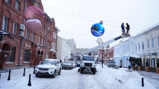 Улицу Федерации в Ульяновске украшают надувными новогодними игрушками
