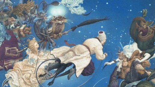 Накануне рождества воздух полон волшебства: ждёт гостей к себе Солоха, не боится черт креста. Полумесяц буквой "эс" мягко светит нам с небес и танцует в этом свете дикий танец тёмный лес.