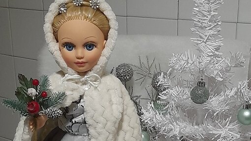 Меховая накидка «Белая песня вьюг» со съёмным капюшоном для куклы Анастасии