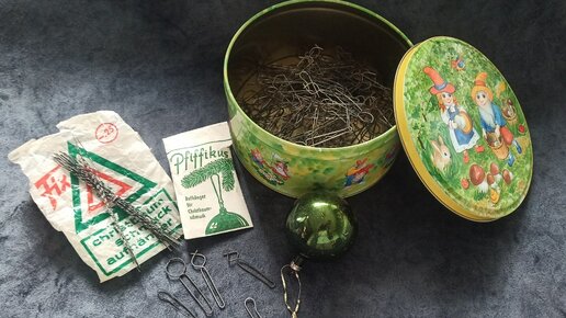 Уже не первый раз возникает интересный дискус по креплениям для ёлочных игрушек. Речь пойдет про те, на которые игрушки крепятся на ёлку. В советское время обычно игрушки вешались на нитки. Иногда в коробках ГДР приходили металлические крепления. Вот о них сегодня и пойдет речь, так как немцы в плане производства ёлочных игрушек всё-таки первые. Расскажу вам то, что узнала про немецкие крепления. До 1950ых было распространено вот такое крепление в виде витой проволочки. Более ранние - из тонкого металла, так как металл был дорогим...