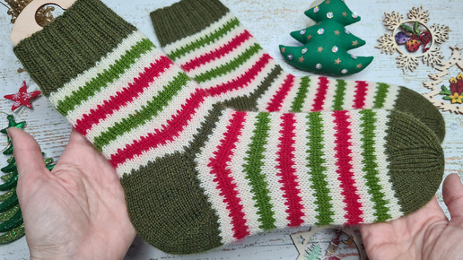 НОВОГОДНИЕ носки "Карамельки". Описание на 64 петли.