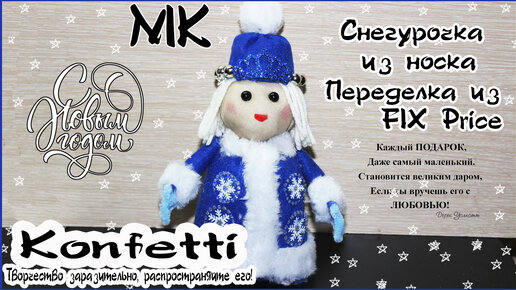 Снегурочка из подарочного носка!Новогодние переделки Фикс Прайс. Марафон-Зима в украшениях @Konfetti