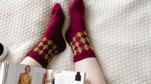 Новогодние носки для новичков – простое описание “Праздничный жаккард”