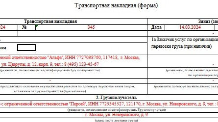 Транспортная накладная в 2024 году