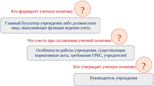 Три ответа на главные организационные вопросы Составление учетной политики учреждения — это процедура, проводимая с учетом законодательно установленных правил. Ответим на три главных вопроса по организации этого мероприятия (*ГРБС — это главный распорядитель бюджетных средств): Причем, в обязанности руководителя учреждения не входит разработка учетной политики. В письме от 31.08.2018 № 02-06-07/62480 Минфин РФ обозначил важный принцип формирования учетной политики бюджетного учреждения: ее содержание...
