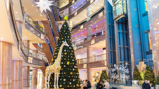 Встречаем Новый год ярко! ⠀ Мы завершили монтаж крутого нового оформления для Торгового центра. Смотрите, что у нас получилось👉🏻 ⠀ Главным акцентом концепции, наряду с величественной елью, стали два гигантских жирафа (5 и 7 метров высотой), полностью покрытые белым и золотым глиттером. ⠀ В качестве подвесных декораций были выбраны элегантные ели с мерцающей гирляндой и объёмные светящиеся «марокканские звезды», форма которых перекликается с украшением на высотной ели и напольным декором. ⠀ ...