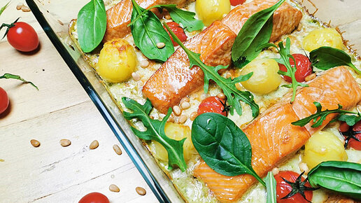 Новогоднее меню! Запеченный лосось с грибами и картофелем