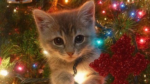Новогоднее настроение — это когда в доме есть ёлка, мандарины и хотя бы один котик, считающий себя главным подарком