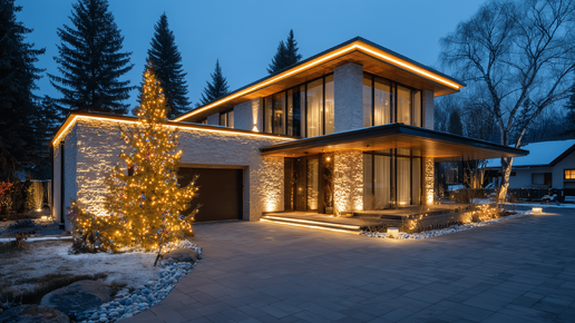 Новый год — это не только про подарки и мандарины, но и про волшебную атмосферу. Представьте, как сияет ваш дом в преддверии праздника: мягкое теплое свечение по контуру крыши, сверкающая гирлянда на фасаде, пушистая ёлка во дворе с мерцающими огнями... Всё это — результат грамотного архитектурного освещения, которое можно заказать под ключ. Каждый фасад уникален — как и настроение, которое он должен передавать. Хорошее освещение не просто «красиво мигает», а создаёт уют, привлекает внимание, подчёркивает архитектуру дома и даже влияет на настроение гостей и прохожих...