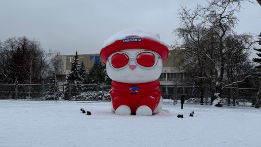Выйдя из музея мы направляемся к подземному пешеходному переходу, чтобы попасть к корпусу Новой Третьяковки. Перед ней тоже украшенные елочки, цифры наступившего года и какой-то загадочный зверь. В темноте наверное это всё смотрится более эффектно...