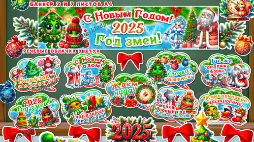 МЕГА КОМПЛЕКТ! НОВОГОДНЕЕ ОФОРМЛЕНИЕ Баннер на 3 и 7 листов А4 Речевые облачка 9 листов А4 Флажки ФОТОБУТАФОРИЯ двусторонняя (разные размеры) Наши шаблоны украсят ваше мероприятие, помогут больше погрузиться в тему и сделать красивые фото. Шаблоны для самостоятельной печати можно приобрести в магазине Wildberries "Кладовая педагога" по ссылке https://digital.wildberries.ru/offer/320869 Или в группе Вконтакте Кладовая педагога Также на стене нашего сообщества VK Кладовая педагога есть много БЕСПЛАТНОГО материала к урокам и внеклассным мероприятиям...