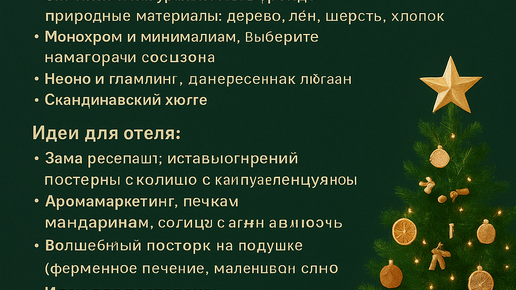 🎄 не просто гирлянды и мишура: как создать волшебное новогоднее оформление для отеля и ресторана 🎄 Дорогие друзья, коллеги и владельцы бизнеса! Декабрь — самое время задуматься о новогодней магии. Правильная атмосфера — это не просто декор, это ваше конкурентное преимущество, которое гости обязательно заметят и оценят. Давайте оформим пространство так, чтобы гости хотели снимать сторис, возвращаться снова и чувствовать сказку. ✨ Тренды сезона 2025/2026: 1. Эко-люкс и натуральность. В тренде — природные материалы: дерево, лён, шерсть, хлопок...
