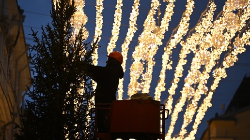 В Театральном сквере Уфы устанавливают новогоднее освещение