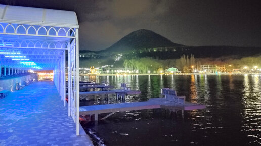 ОК, я тоже за любой здоровый кипеш, в смысле ЗОЖ. Хотелось увидеть иллюминацию на озере, ночью. Поэтому предложила гостям маршрут с волшебными огоньками :) На дворе - морозный ветрюган. Редкие Железноводские дни и ночи, когда зимой - холодно и морозно...
