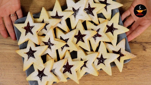 Сегодня готовим по-настоящему новогодний десерт – печенье «Звёзды». Я раскрою все секреты идеального песочного теста – того самого, которое никогда не подводит! Печенье получается нежное, рассыпчатое, красивое и буквально тает во рту! Песочное тесто: мука – 300 г; сахарная пудра – 100 г; ванилин – щепотка; разрыхлитель – 1 ч.л.; лимонная цедра – 1 шт.; желтки – 2 шт.; сливочное масло (мягкое) – 200 г. Начинка: джем/варенье – 80 г. Посыпка: сахарная пудра. В глубокой миске смешиваем 300 г просеянной муки, 100 г сахарной пудры, 1 ч...