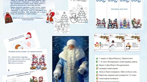 Новогодний квест для 1-2 классов 🎄🎄🎄 Квест подарит детям незабываемые эмоции, поможет объединить класс, создать атмосферу праздника и дружбы💫☃️ В набор входит: 1. Квест с заданиями 2. Инструкция проведения квеста 3. Видеоролик «Приветственное слово Деда Мороза» 4. Видеоролик «Поздравление Деда Мороза детей с Новым годом» 5. Новогодние закладки для книг –подарки для детей...
