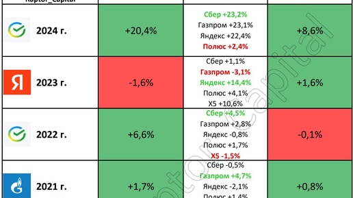 📌 Новый год уже на за горами, поэтому с каждым днём всё больше встречаю упоминаний о предстоящем новогоднем ралли на рынке акций. Собрал статистику за последние 5 лет, чтобы оценить, как этот феномен отражается на нашем рынке. • В таблице посчитал динамику индекса Мосбиржи (IMOEX), индекса гос. облигаций (RGBI) и изменение стоимости некоторых акций в конце 2020-2024 годов. Для удобства указал «с 20 по 30 декабря», но везде брал данные за последние в году 10 торговых сессий (разница между ценой открытия в 1-й день и ценой закрытия в 10-й день)...