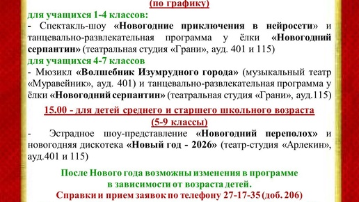 ПРОГРАММА новогодних спектаклей, представлений и дискотек у ёлки во Дворце пионеров и школьников города Курска 22-30.12.2025 г.; 02-06.01.2026 г. #образованиеКурск #образование46 #ДПШ