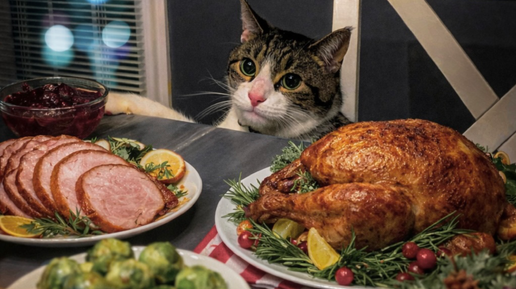 В новогодние праздники многие владельцы сталкиваются с одной проблемой — кот просит еду со стола.