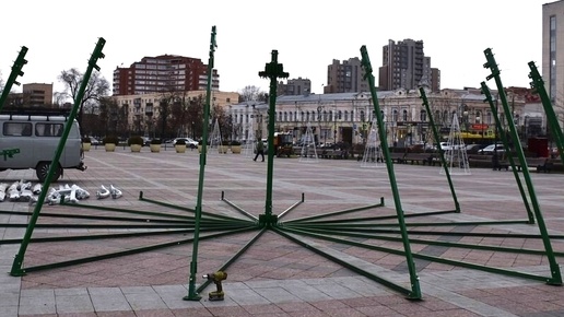На площади Ленина начали собирать главную новогоднюю елку Пензы