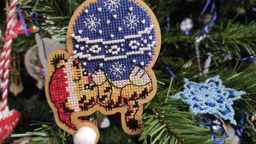 Вышила новогоднюю игрушку "Шалунишка" и сразу украшать ёлку