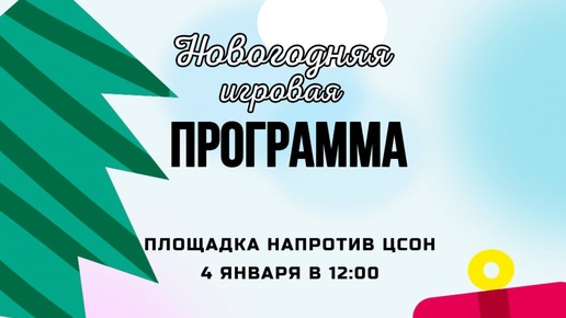 🎄 4 января в 12:00 приглашаем всех на праздничную игровую программу на площадке напротив ЦСОН❄️ Вас ждут весёлые игры, танцы и конкурсы. Берите с собой хорошее настроение и приходите встречать Новый...