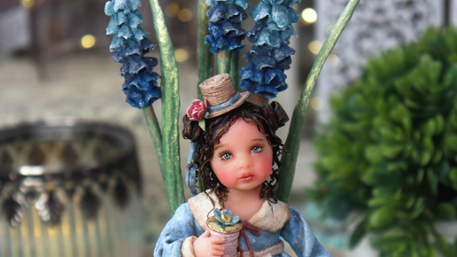 Всем привет. Ещё снег не растаял, а у нас уже весна. Недавно в моей мастерской появилась маленькая феечка, совсем небольшая, всего 12 см. Оказалось, что она обожает рукодельничать и поселилась на большой катушке с нитками. Так я её и назвала «Катушечкой» или сокращённо Кэти. Кэти обожает цветы и так ждёт весну, что синие мускари выросли прямо у неё из катушки. Кэти "Катушечка" обожает нарядные платьица, рюшнчки и бантики...