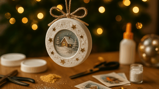 Сделали новогоднюю игрушку из пластиковой крышки — и она смотрится как дорогой декор из шоурума