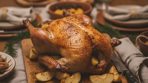 Новогодняя индейка или утка с яблоками и клюквенным соусом