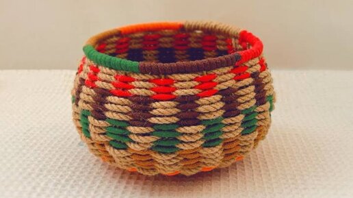 Как сплести короб из джутового шпагата, картонной коробки и деревянных палочек - подробной МК!
