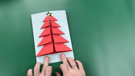 Новогодняя открытка с красной ёлочкой из треугольников: мастер-класс от декоратора