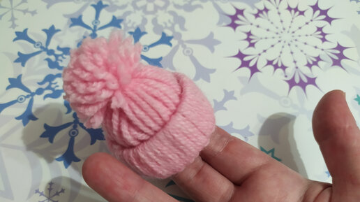 Новогодняя мини-шапочка за 10 минут из втулки от туалетной бумаги и ниток