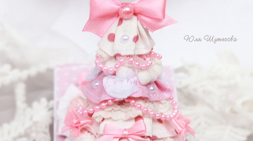 Вновь приветствую вас на моем канале! Пришло время делить новогодним вдохновением и атмосферой сказки. Я очень люблю новогоднюю подготовку и начинаю ее заранее)) На моем рабочем столе уже давно мелькают снежинки, блестки и елочки. И сегодня хочу показать вам необычный формат новогодней открытки - коробочку с сюрпризом, внутри которой красуется нежная елочка ручной работы из ткани и кружева. Размер коробочки в собранном виде 11х9х9см Основа выполнена из плотного кардстока белого цвета и оформлена дизайнерской бумагой розового цвета в мелкий белый горошек...