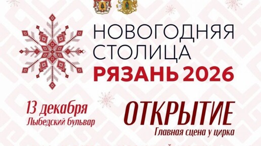 13 декабря в Рязани официально стартует проект «Новогодняя столица России 2026» — масштабное мероприятие, организованное при поддержке Министерства культуры РФ. В 15:00 на главной сцене у цирка начнётся танцевальный флешмоб «Навстречу новогодней столице» — приглашаются все, кто хочет просто танцевать и зарядиться праздничным настроением. С 15:15 до 16:15 — увлекательная познавательная программа «Всё про Новый год», где гости узнают об истории традиций и обычаев. В 16:15 начнётся интерактивный спектакль...