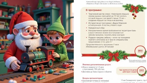 Новогодние детские туры на базе отдыха Верхний бор! Новогодняя сказка в резиденции Деда Мороза (для дошкольных учреждений и 1-7 классов) В программе: - Творческий мастер-класс "Новогодняя игрушка своими руками" - Интерактивная программа в зале с Дедом Морозом и Снегурочкой - Праздничный обед - Неограниченное время пребывания на территории базы (самостоятельно можно воспользоваться зимним прокатом, посетить мини-зоопарк, веревочную полосу препятствий) - Подарок каждому ребенку "Верхом на огненном...
