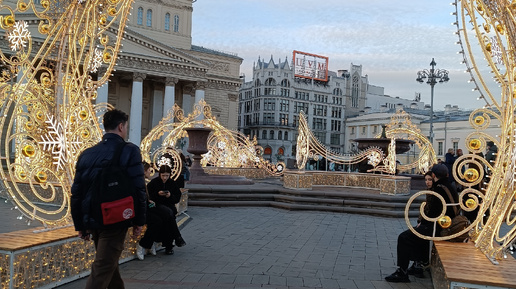 11 марта 2025 года Здравствуйте, друзья! В прошедшие праздничные выходные оказалась я случайно в сквере у Большого театра. Вообще-то путь мой лежал в Петровский Пассаж, где проходила выставка цветов. Но мимо сквера пройти было сложно. Мне тогда убранство этого места показалось немного странным. Вместо весеннего многоцветья белые арки, довольно красивые, но что-то в них не так. И только на следующий день, когда снова оказалась в том же сквере, но уже попозже, перед началом спектакля в театре Оперетты, поняла, что меня насторожило...