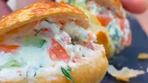Ингредиенты Раскатать тесто толщиной 5мм. Вырезать стаканом кружочки. Смазать яйцом и выпекать в духовке 15-20 минут 180-200С до румяной корочки. Подготовить начинку - смешать мелконарезанную красную рыбу, огурец, укроп и творожный сыр...