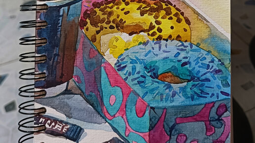 Акварель- отличный материал для скетчей и пленэрных вылазок. С прошлого лета я с удовольствием хожу на пленэры, а когда погода не позволяет- делаю зарисовки с натуры, в основном это скетчи с едой, потому что еда- идеальный объект для быстрых зарисовок: ярко, выразительно, а главное- можно обойтись без сложного рисунка и анатомии. Рисование с натуры- отдельное удовольствие, которое никак не сравнить с рисованием по фотографиям... Да еще и отличная тренировка композиционного мышления, цветового чутья...