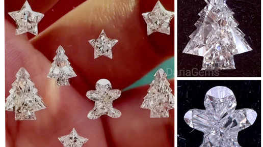 Международная фирма Dayagi Diamonds (Израиль, США, Бельгия, Гонконг) представила бриллианты в праздничной новогодней тематике: в форме звёзд, ёлочек и пряничных человечков. Также фирма гранит алмазы в самые невероятные формы, получаются удивительно забавные бриллианты в форме, например, бабочки, утки, облака, зайца, кошки, собаки, мишки, черепахи, мороженого. Используется не только бесцветное алмазное сырье, а также маловостребованное жёлтое и коричневое...