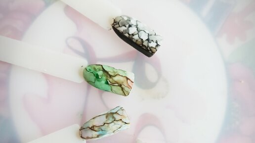 Не сложный, но эффектный дизайн на ногтях. Мрамор акварелью
