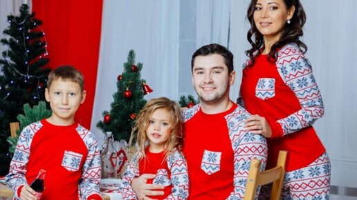 Новогодний Family Look 2024: праздничные комплекты одежды на Новый год для всей семьи